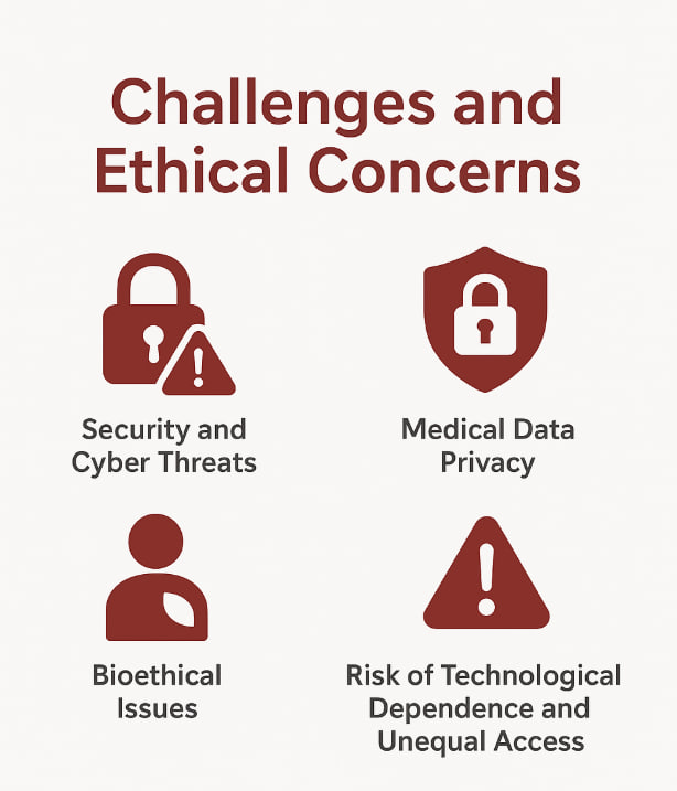 However, this progress also brings serious challenges. Cybersecurity becomes critical, as implanted or intracellular sensors may be vulnerable to attacks. Data privacy and ethical issues, such as a person’s right to control their own biological devices, require careful regulation. Additionally, it is essential to ensure equal access to innovations so that technological progress does not deepen social inequality in healthcare.